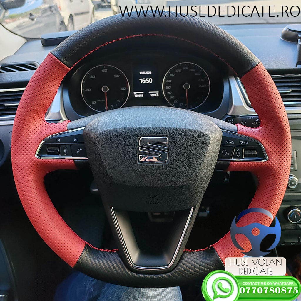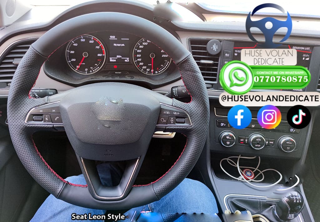 Seat Leon 2016 - Kırmızı & Siyah komple deri direksiyon kaplama (2)